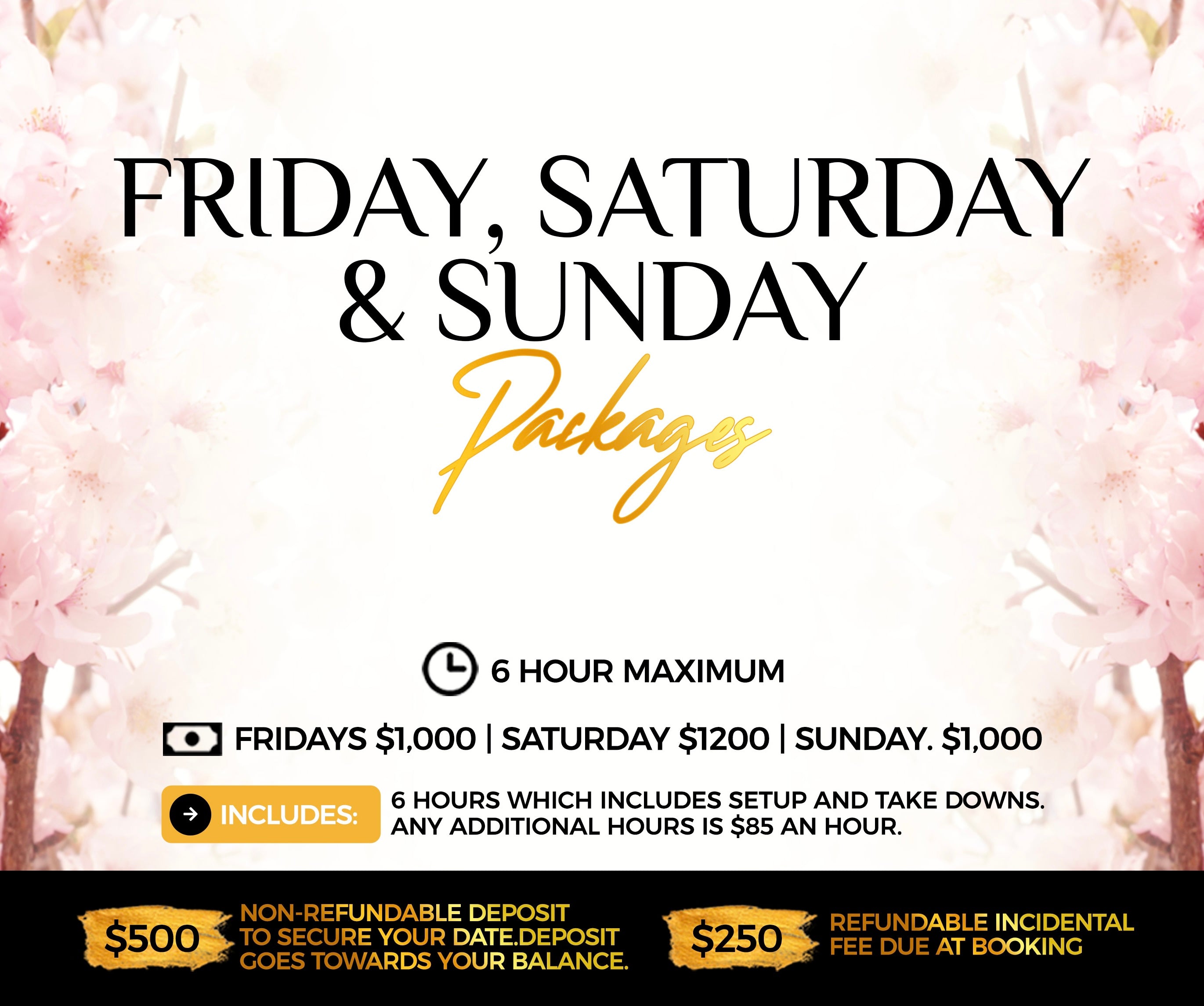 Friday, Saturday & Sunday Packages (6Hours Maximum)
